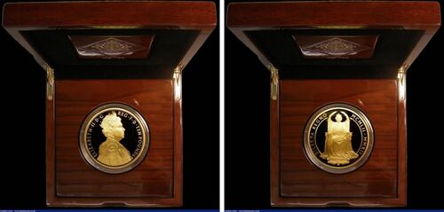 1952年にイギリスの女王になられて2012年が60年になり、その60年記念の ダイアモンド ジュビリーとして発行された、5オンス金貨です。 右向きの凛としたお顔と、戴冠時の椅子ではないですが着座のお姿。 あとひと月ほど、4月21日に92歳の誕生日を迎えられる…